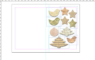 7. Insert or place your Christmas graphics to the right hand side of the document only. This will be the front of your card. Keep all elements a good 10mm away from the edges of the document. Design to your heart's content! For this example, I used multiple elements.